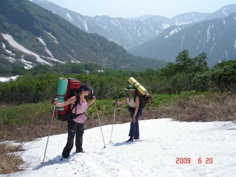 Чтобы попасть в долину, надо прогуляться километров 15 с рюкзаком и забраться на 800 метров. Дорога в июне очаровательна. Комары не очаровательны.