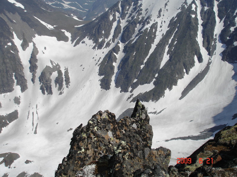 Дальше идти некуда. С другой стороны вершины - отвесный обрыв. Я прикинул, что он около километра.
