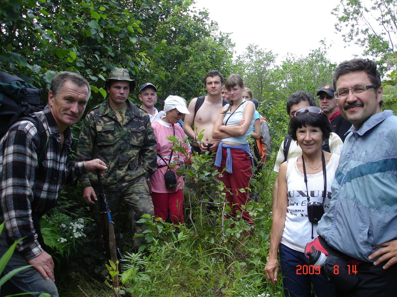 На озеро 12 км мы шли пешком в сопровождении егеря Геннадия. Он опытный человек и не давал нам растягиваться, слегка помахивая карабином. :)