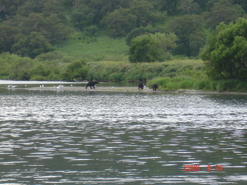 Путешествие на Курильское озеро - это самое невероятное приключение, в котором я побывал на Камчатке. Такое же мнение у членов моей семьи. Озеро находится на юге Камчатки и принимает на нерест около 3 млн. штук нерки. которые приходят нереститься по реке Озерной. Нерка очень крупная. Естественно медведи не могут оставить такое изобилие без внимания. Поскольку это район заказника, и егеря крепкие неподкупные парни, медведям и другой живности там живётся просто здорово. Вот внутри этого уголка настоящей природы мы и побывали. Общее время путешествия - 6 дней. До посёлка Озерновский от Петропавловска примерно 450 км. День - приезд, день - отъезд. 2 дня на озере. Кусочек дня - на Кутхины Баты. День - на Белые водопады.