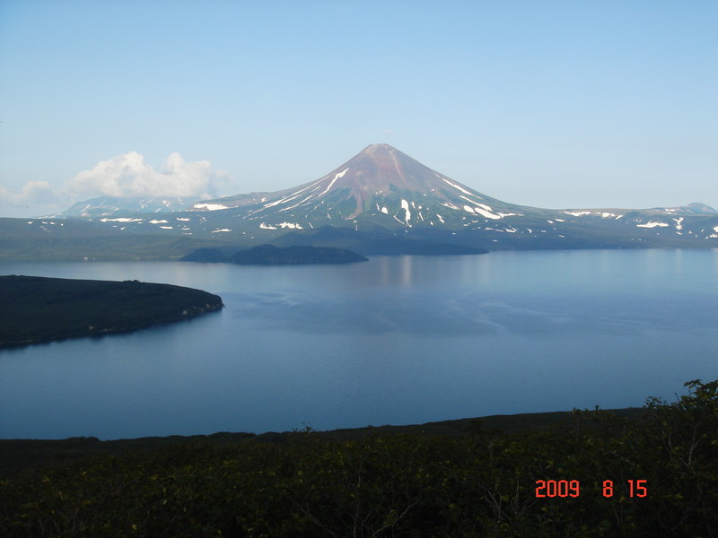 Вечернее озеро. Вулкан Ильинский. Мы полазили по стланнику, забрались на ближнюю горку и насладились пейзажами.