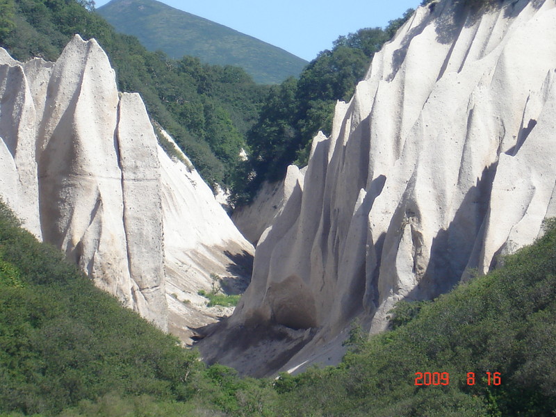 Вот сами Кутхины Баты - пемзовые скалы, похожие на лодки (баты), прислонённые к стене. Кутх - ворон, верховное божество Камчатки.