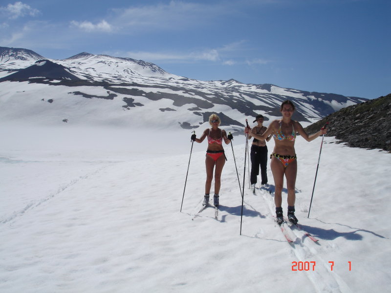 Вот в июле то и самое время кататься на лыжах по Камчатке. Мошки и комаров нет, солнце круче египетского, на улице +20, наст не валится.