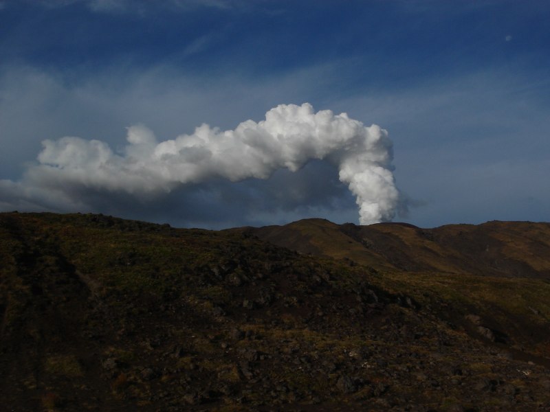 В 2010 вулкан начал активничать. Струя перегретого пара была видна даже из Петропавловска.