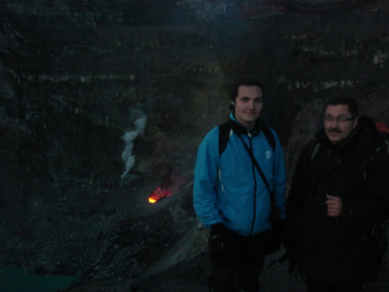 В 2010 мы совершили ночное восхождение, чтобы посмотреть на щель, откуда с диким рёвом вырывался газ температурой около 800-900 градусов из глубин Земли. Он создавал облака только в метрах 300 от щели, когда достаточно охлаждался. |