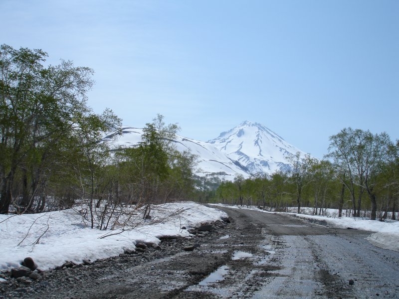 Дорога сделана к Мутновской геотермальной электростанции. В июне она обычно уже растаяла и почищена, но в некоторые года можно не доехать даже под Вилючинский вулкан.