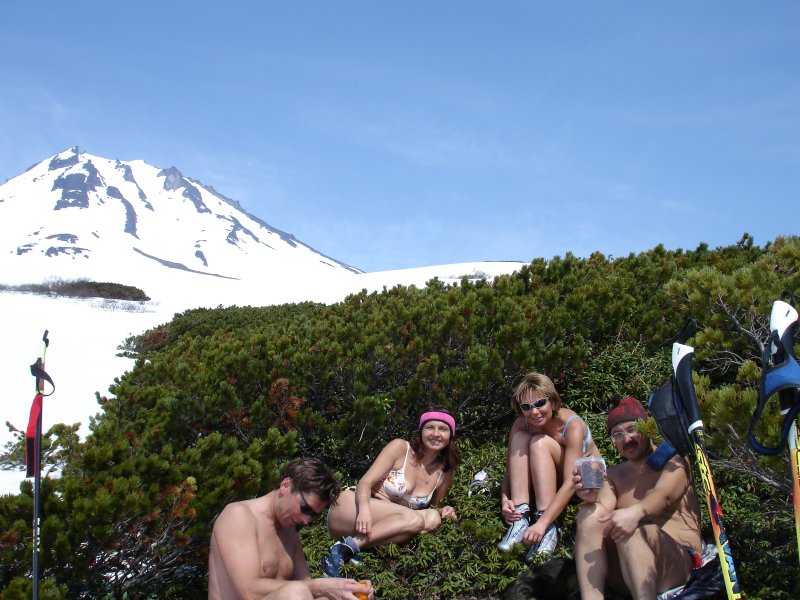 Любимое развлечение в мае-июле - это подъехать под Вилючинский и погонять по насту коньком на беговых лыжах. Иногда в этих развлечениях мы поднимаемся на высоту больше 1200м.