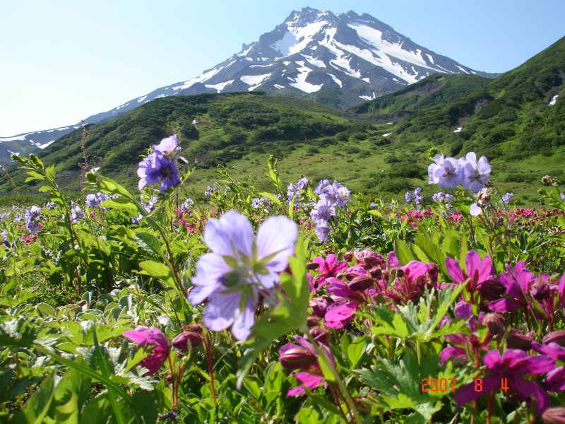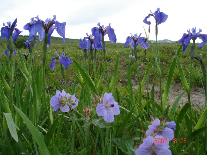 Поля ирисов и других цветов - обязательный аттрибут летних походов около Вилючинского вулкана.